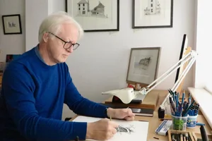 I have always enjoyed making “mundane” items look visually interesting and drawing largely helps to achieve this aim, with the character of the marks and the use of line weight. In my opinion, there is a beauty in such things. Although I mostly sketched in pencil up to this point, I used it as an opportunity to incorporate colour as well as pen. There were times when I had to seriously think about which items that I had not already sketched that could be used to represent a task of each day. It got more challenging towards the end because I was determined not to be repetitive in what I chose, despite feeling like we were all living in Groundhog Day a lot of the time! I became more daring in sketching bigger items and interiors, using my professional interior architecture background. However, like a lot of people, I did have my moments of anxiety that came out in my vivid dreams in this phase, because we were all having to live with a lot of uncertainty and scary news.